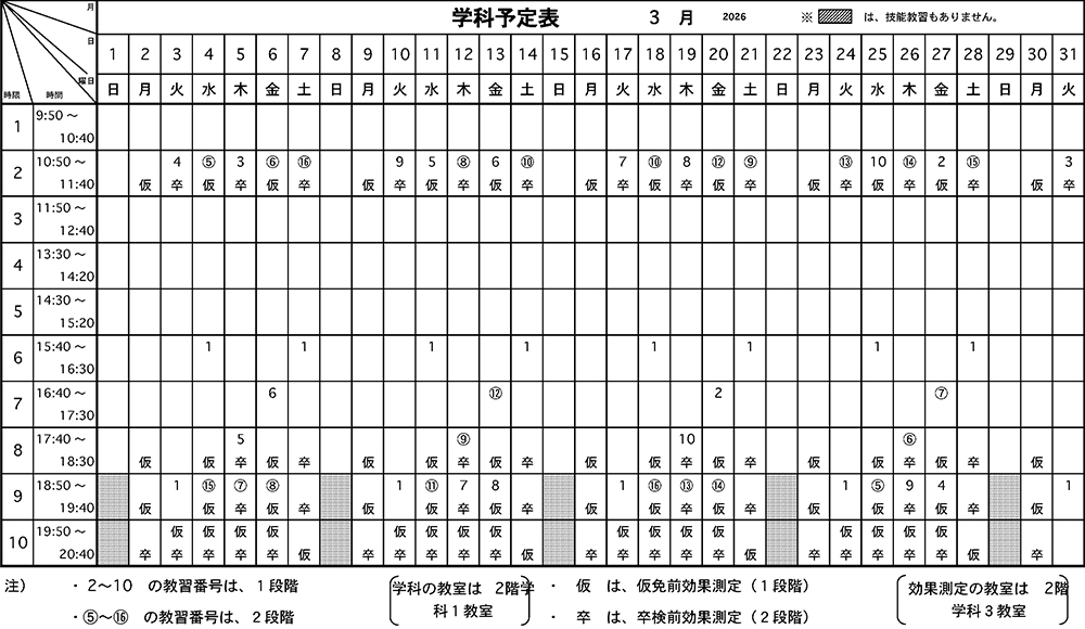 技能教習・学科教習実施時間
