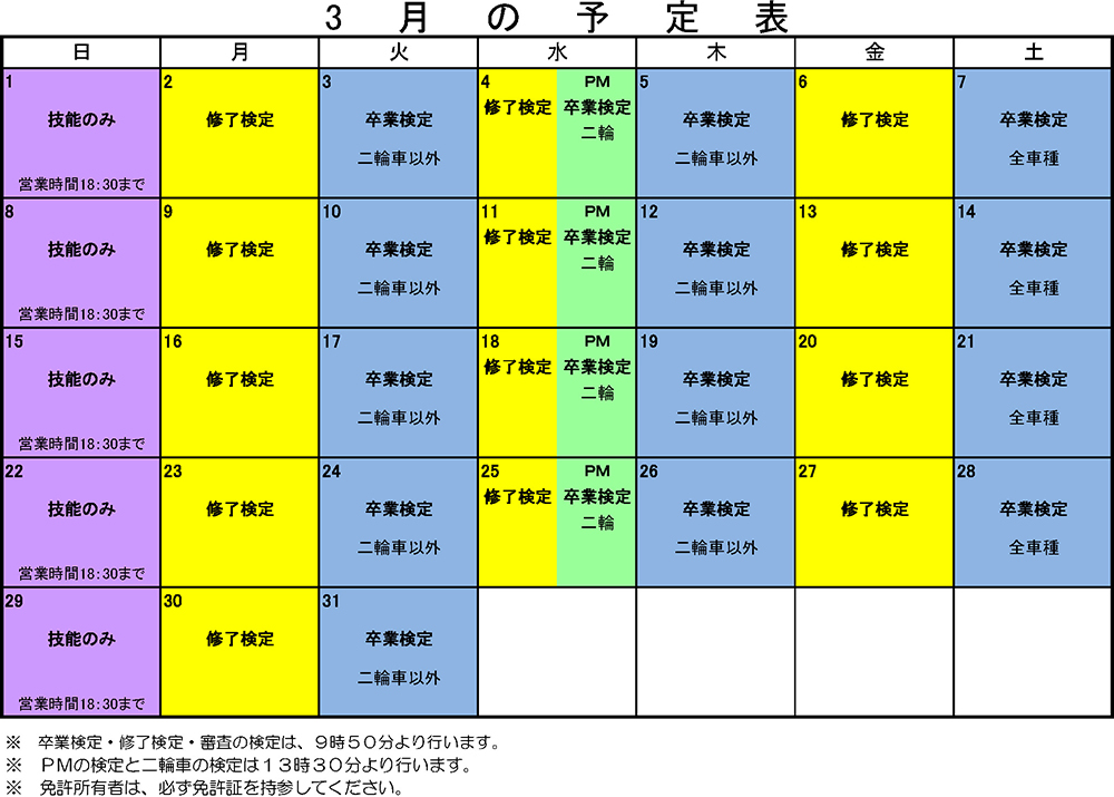 3月の検定予定表をダウンロードする